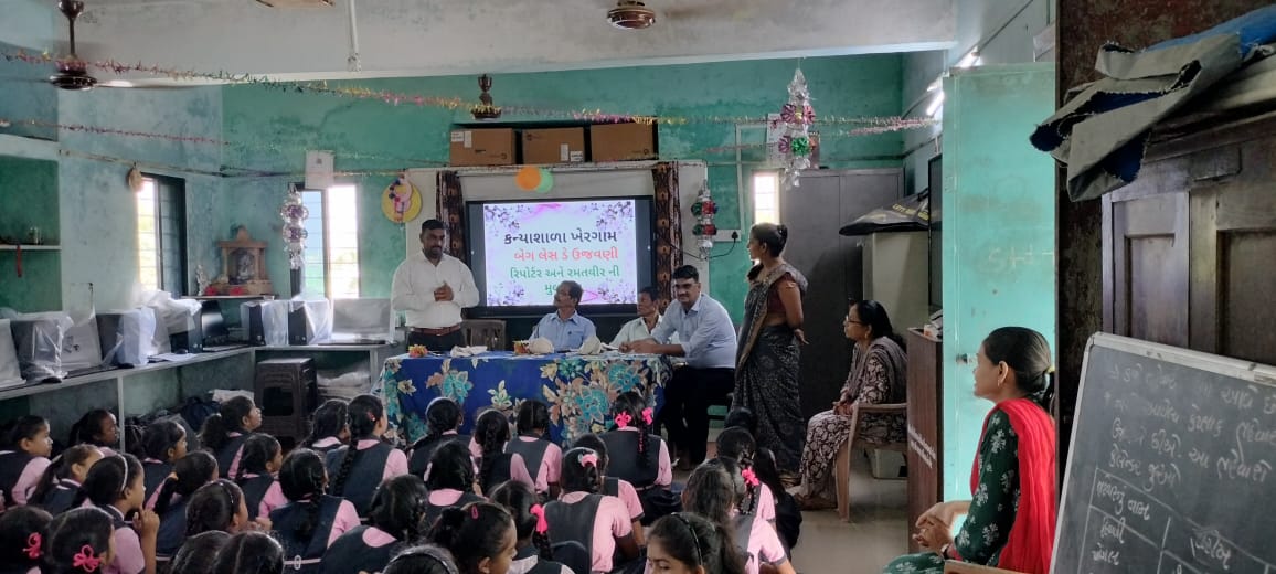 કન્યાશાળા ખેરગામ વર્ષ 2024-25 ના પ્રથમસત્ર દરમિયાન "બેગ લેસ ડે' અંતર્ગત ધોરણ 6 થી 8 ના વિધાર્થીઓ માટે 5 દિવસ બેગ લેસ ડે' તરીકે ઉજવવામાં આવ્યો. શાળાનાં બાળકોને સચોટ માહિતી સુલભ થાય એ હેતુસર ખેરગામના બ્યુટીસિયન, રમતવીરો, અને પત્રકારશ્રીને આમંત્રણ આપવામાં આવ્યું હતું.